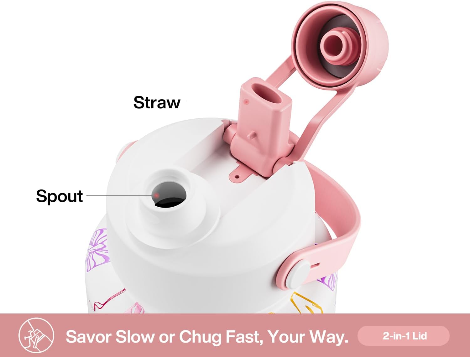 40 oz Insulated Water Bottle with 2-in-1 Straw and Spout Lid, Keep Cold 24H, Leak-Proof, BPA-Free, Double Wall Stainless Steel Water Bottle for Sports, Gym, Travel, and School (Ribbon Whimsy)