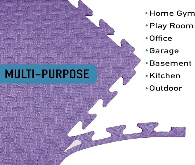 AIRHOP Upgraded 0.79" Extra Thick 48 Sq Ft High-Density Eva Foam Exercise Gym Mats, 12 Pcs Large Interlocking Puzzle Floor Tiles (24"x24") for Home Gym, Black&Purple