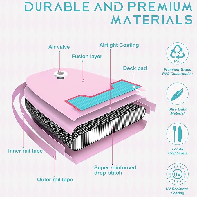 - 2. Crafted from military-grade materials, the AIR-STONE paddle board is ultra-light and durable. Enjoy a comfortable, non-slip EVA deck for safety and stability during your water activities.