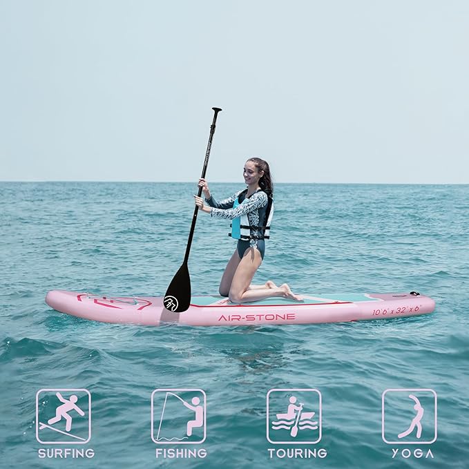 - 1. Experience stability and versatility with the AIR-STONE inflatable paddle board, designed for all skill levels. Perfect for ocean, lake, or river adventures, it supports up to 450lbs.