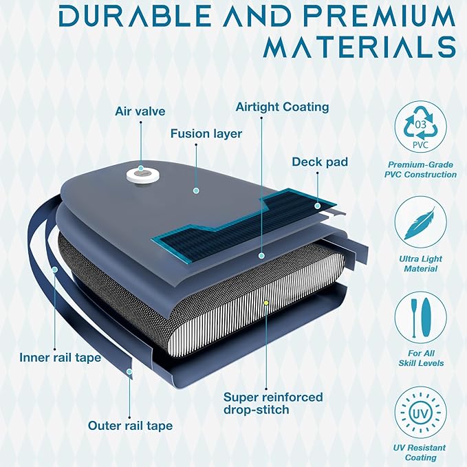 - 2. Crafted from military-grade materials, the AIR-STONE paddle board is ultra-light and durable. Enjoy a comfortable, non-slip EVA deck for safety and stability during your water activities.
