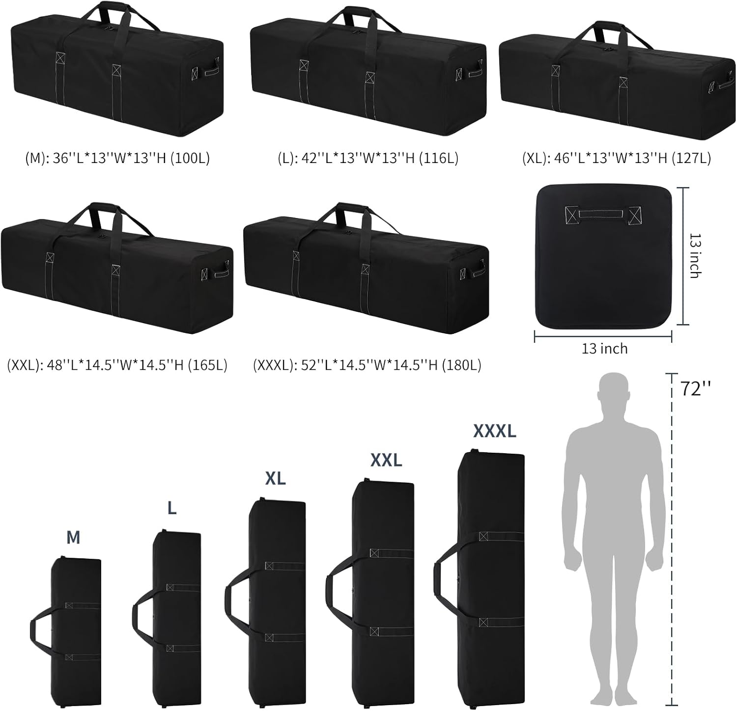 - Versatility Duffel Bag: This heavy duty duffle bag can be as a camping bag, tent bag, travel bag, sport bag. Perfect for self-driving trip, sport activities, disassembled christmas tree storage, photography stands storage, home storage, house moving, fit your larger and heavier items nicely.