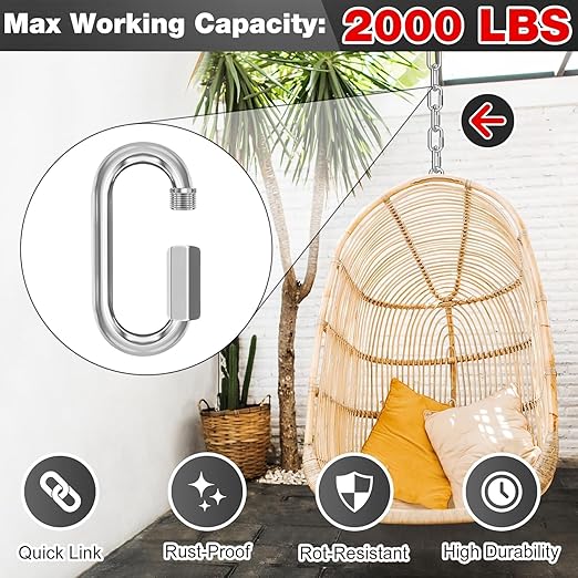 - 【Easy to Link】Threaded quick links enable quick connection of chains and ropes. Without other complicated tools, just lock them by turning hexagonal nut. Create permanent or temporary secure connections. Carabiner locking can be used anywhere at any time