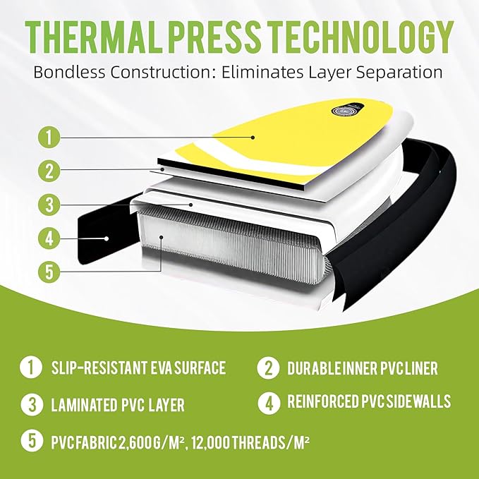 - 【Dual-Reinforced PVC & Barefoot Confidence】Crafted with 2mm-thick lightweight PVC, this inflatable board balances effortless portability with layered puncture protection. The textured EVA deck prevents slips during ocean yoga/fishing.
