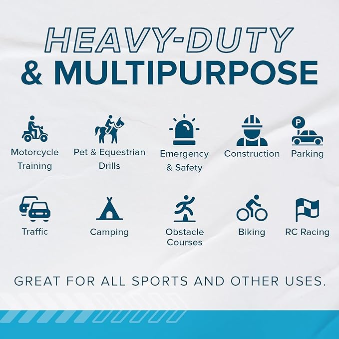 - Multipurpose Colored Cones: Not only can our drill cones withstand harsh weather environments, but they can also withstand intense training sessions in various settings. Perfect for sports practice, agility training, obstacle courses, safety drills, parking cones, pet training, construction, and more. Available in 2β, 6", and 12" sizes, in orange, green, yellow, and other bright colors, plain or numbered cones to fit your needs.