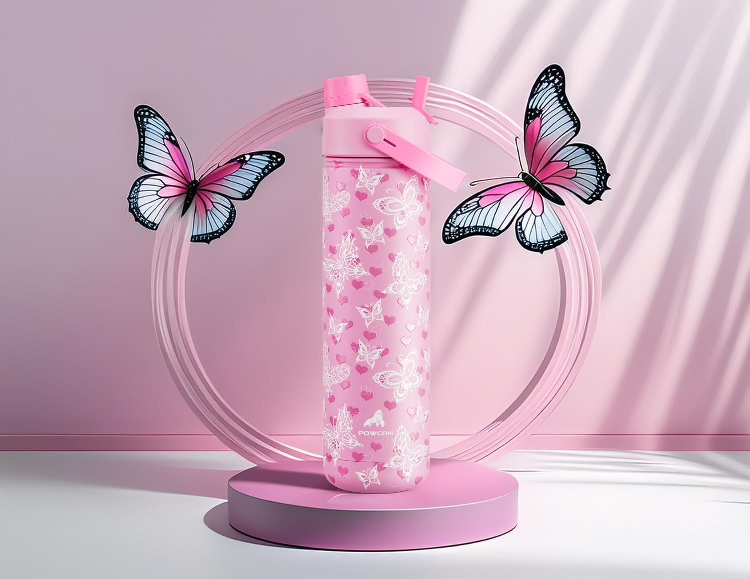 26 oz Insulated Water Bottle with 2-in-1 Straw and Spout Lid, Keep Cold 24H, Leak-Proof, Fits in Car Cup Holder, Stainless Steel Water Bottle for Sports, Travel, and School (Fluttering Amour)