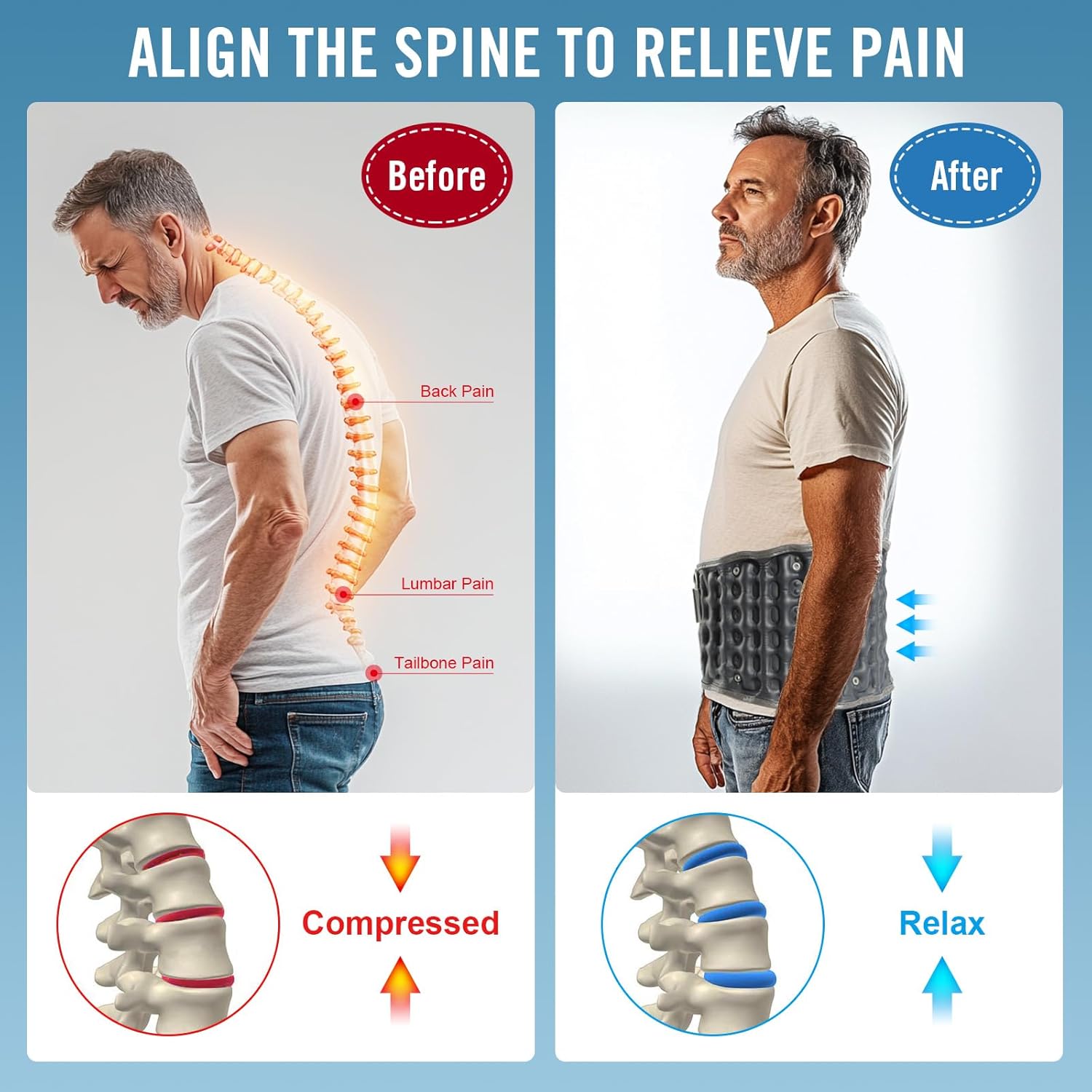 - Amazing support: Our Inflatable Back Reliever is equipped with 30 H-shaped air columns, the brace forms a curved traction when inflated, providing strong 360° direction support that not only relieves back pain but also helps correct posture.