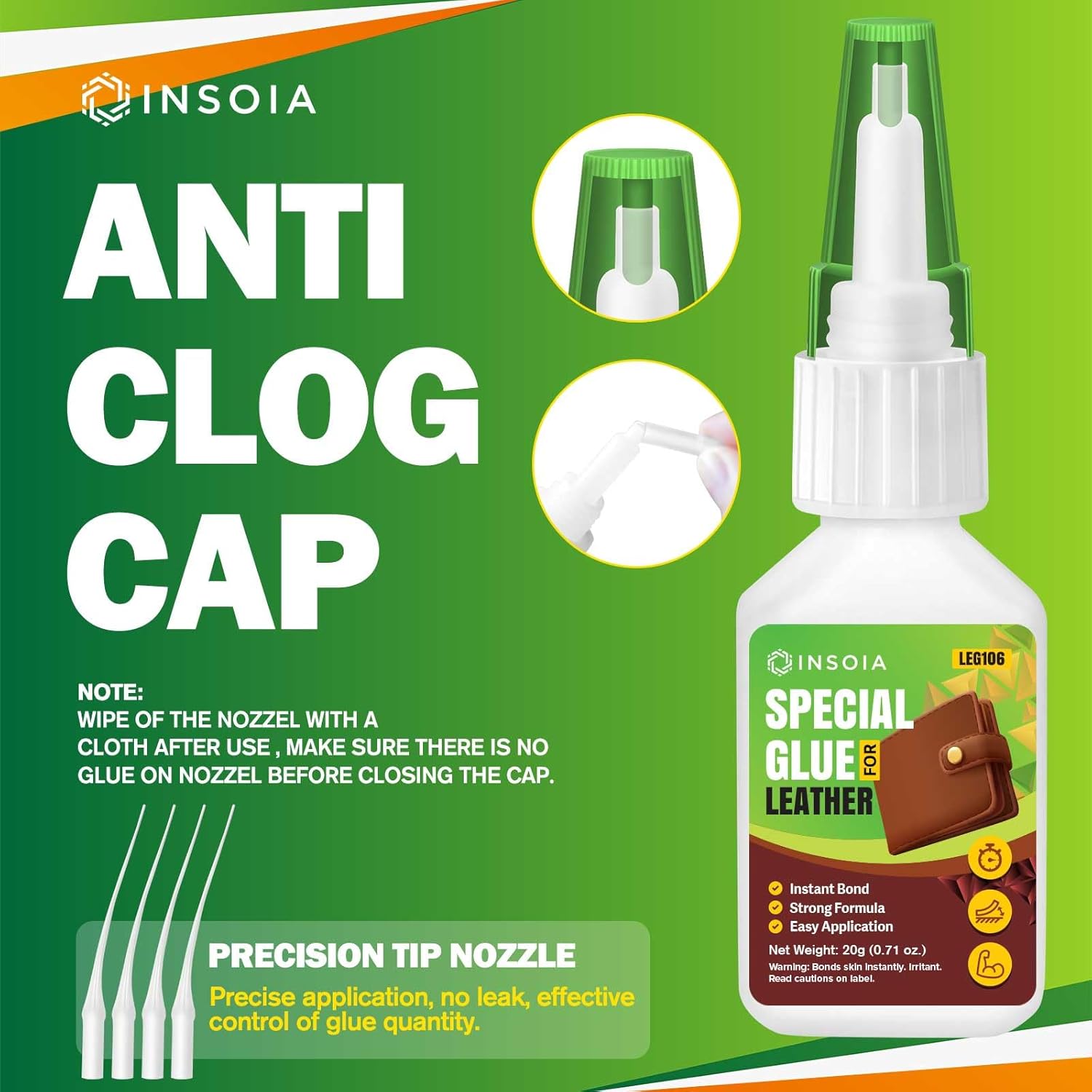 - ăPrecision ApplicationăINSOIA instant leather glue comes with precision applicator tips, allowing you to apply the adhesive exactly where you need it with no spills or mess. Even in tight or hard-to-reach areas, ensuring seamless and invisible repairs. Once cured, it's easy to scrub off any excess for a neat and polished appearance. Whether you're a seasoned leatherworker or a passionate DIY enthusiast, our Leather Glue is a must-have addition to your crafting toolkit.