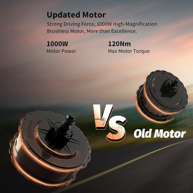 - 1000W high-speed brushless motor provides e-bike max speed up to 31 mph. 26"x4" wearproof fat tires fit for multiple terrains, excellent grip and skid resistance. 85N·M of torque, suitable for riding on beach, snow, rough terrain and street.