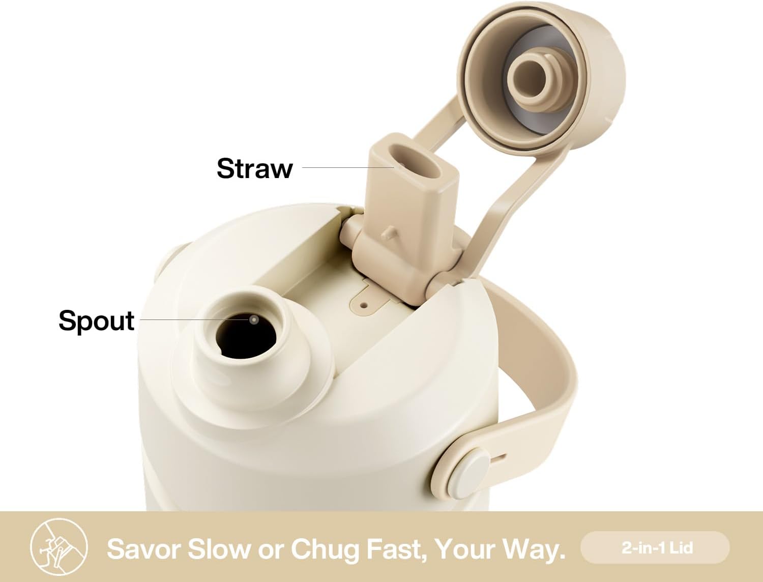 - Versatile 2-in-1 Lid: Features a straw for easy sipping and a spout for effortless pouring or chugging; simplifying beverage access whether it's a hot coffee or a cold drink