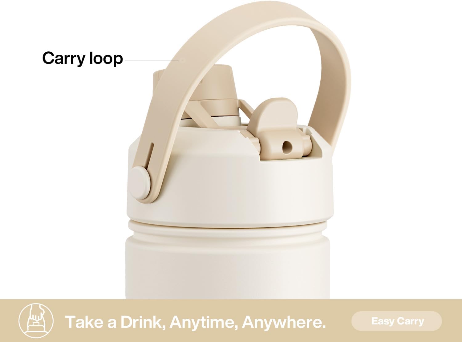 26 oz Insulated Water Bottle with 2-in-1 Straw and Spout Lid, Keep Cold 24H, Leak-Proof, Fits in Car Cup Holder, Stainless Steel Water Bottle for Sports, Gym, Travel, and School (Mousse)