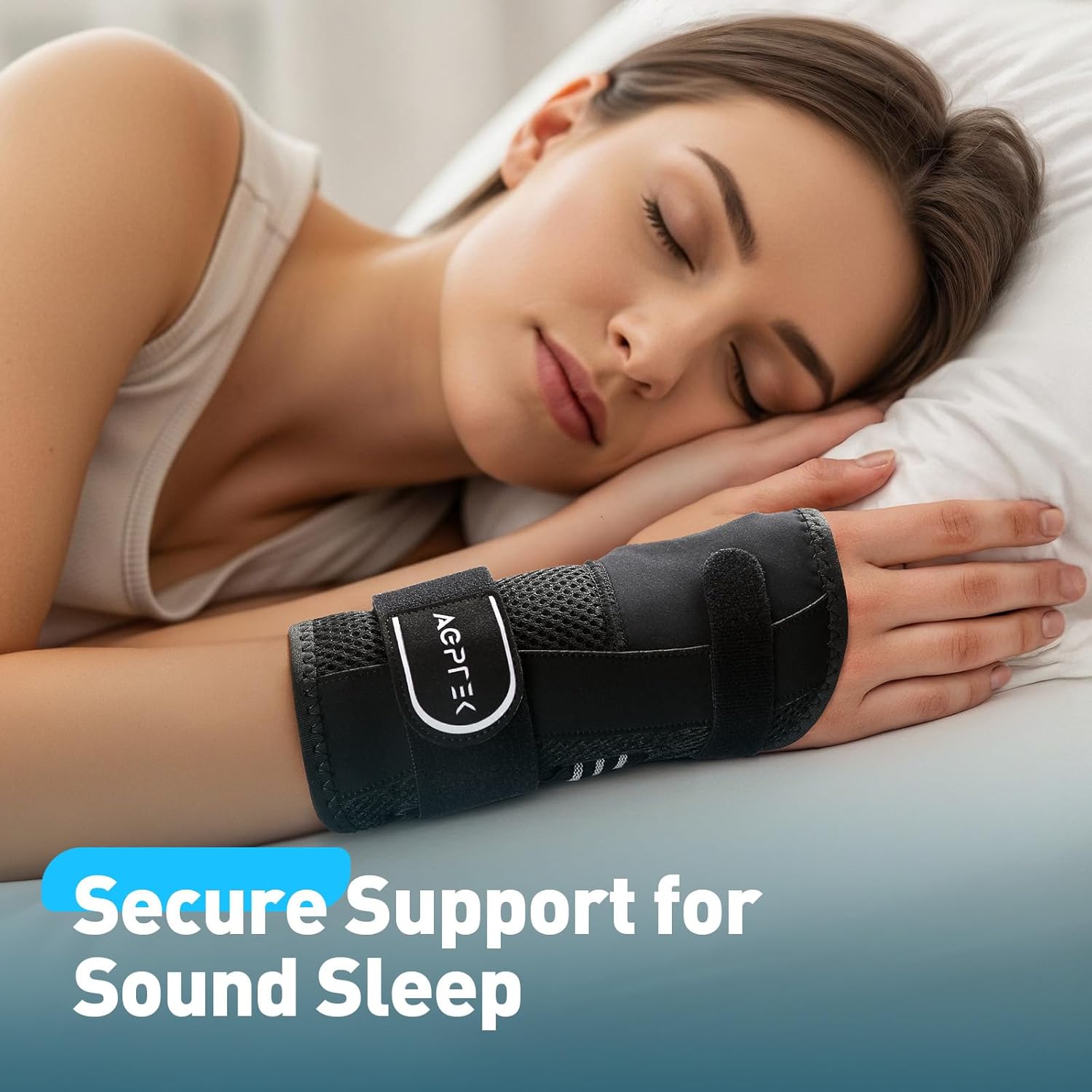 AGPTEK Carpal Tunnel Wrist Brace for Men Women, Night Sleeping Wrist Support with 2 Splints, Pain Relief Hand Brace for Arthritis Sprains Tendonitis, Adjustable Wrist Splint for Right Hand (L/XL, Black & White )