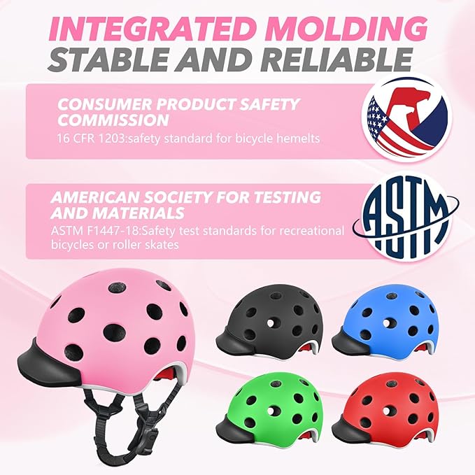 - 【BREATHABLE-SUNSHADE-BEAUTIFUL】 There are 20 ventilation holes on the top of the children's helmet, which is ventilated and breathable, quickly takes away heat, reduces sweating, and keeps the head comfortable. The brim design can effectively prevent foreign objects from entering children's eyes and has a certain sunshade effect. The bottom edging design makes the whole helmet look high-end, fashionable and beautiful.