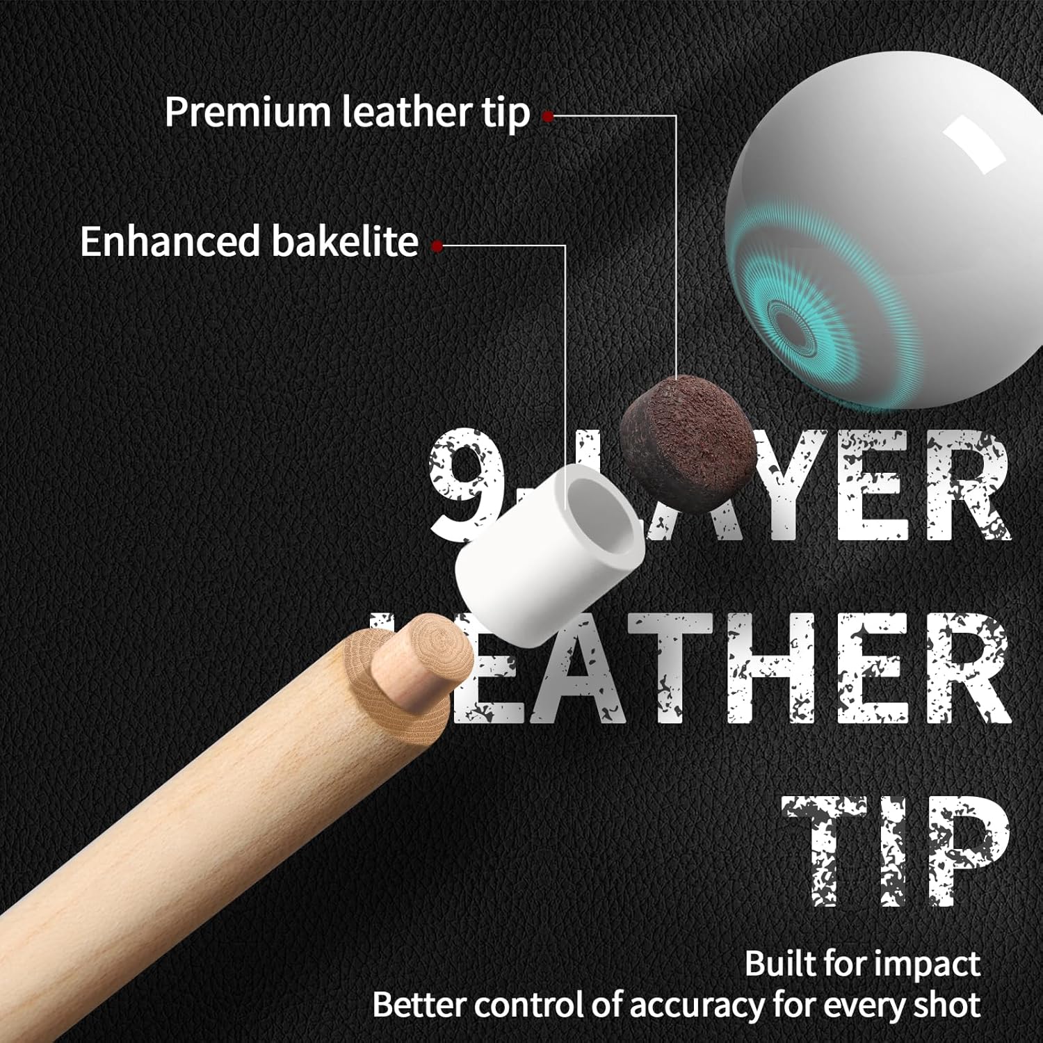 - 9-Coat Wood Grain Butt: 9-layer gloss finish enhances natural timber texture while resisting scratches/sweat. Experience elegance in every Billiard Cue