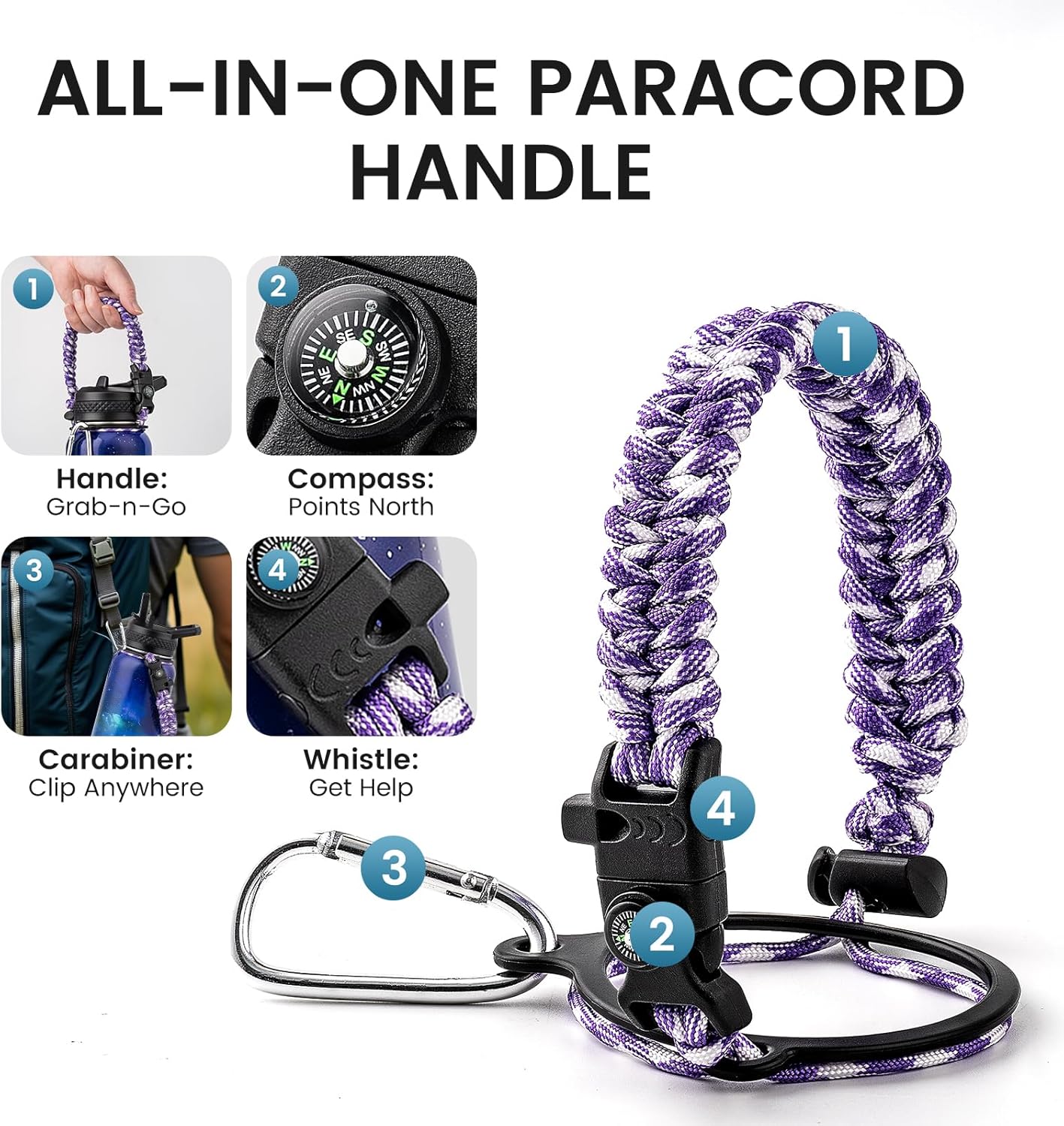 - Adventure Ready Paracord Handle: RAYMYLO 1/3 gallon water jug features a stylish color-coordinated paracord handle with a built-in compass and carabiner clip. This reusable water bottle's paracord handle is lightweight, durable, and perfect for hands-free carrying during hikes, cycling, or camping. Grab & go for spontaneous adventures under the stars!