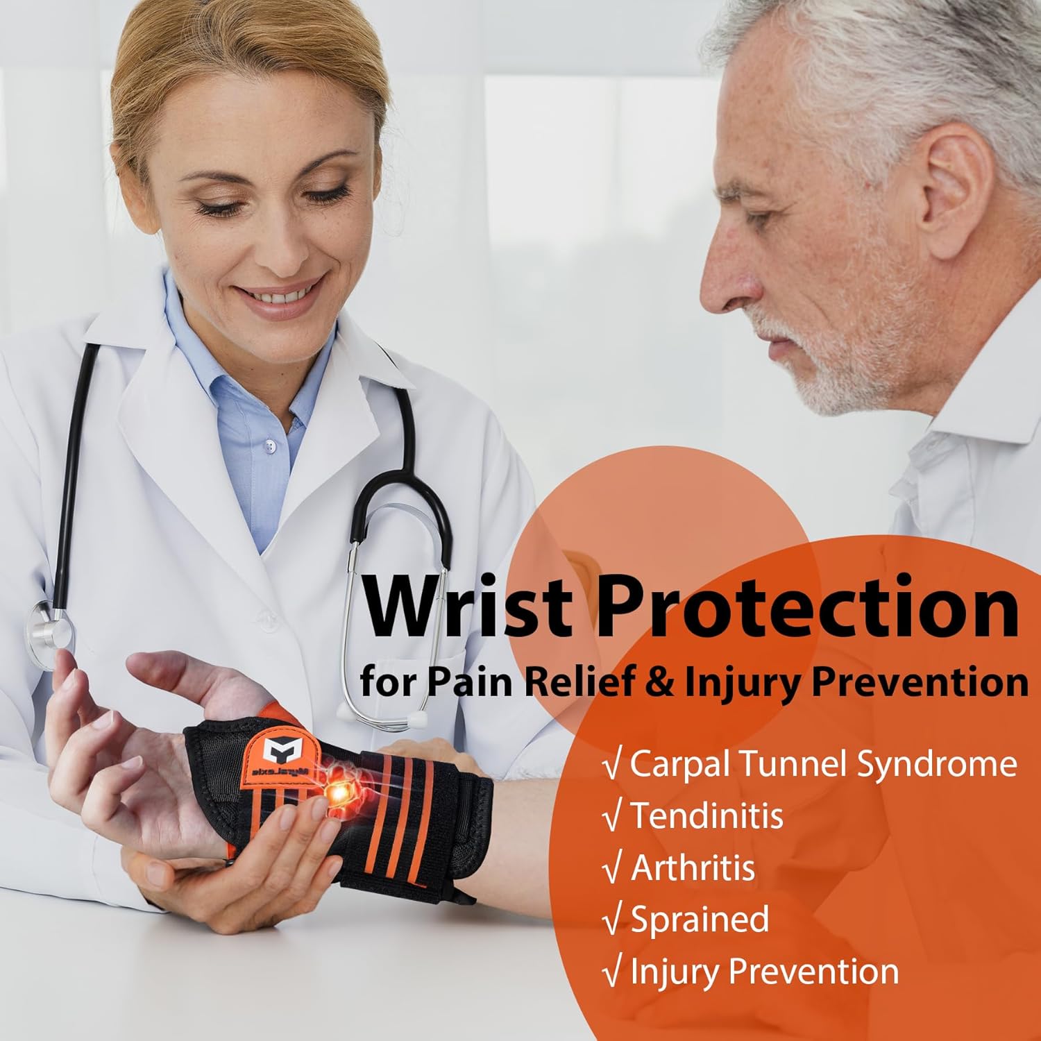 - 【Ergonomic Support for Wrist Pain Relief】 This wrist support braces has been fully upgraded in structure and comfort, providing all-day pain relief for issues such as carpal tunnel syndrome, tendonitis, arthritis, and sprains. It features a built-in removable ergonomic aluminum splint and two flexible support bars, effectively keeping the wrist in a natural neutral position, reducing pressure, preventing overuse, and speeding up the recovery process. It can be worn comfortably during work or even while sleeping.