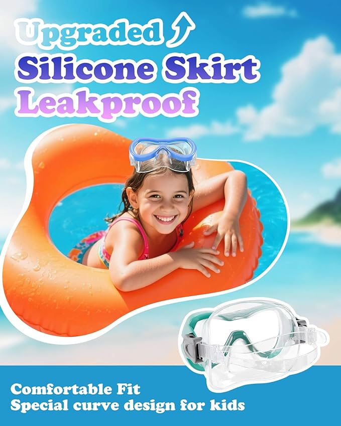 Aegend Kids Swim Mask Goggles, Tempered Glass 180Β° HD Wide View with Nose Cover
