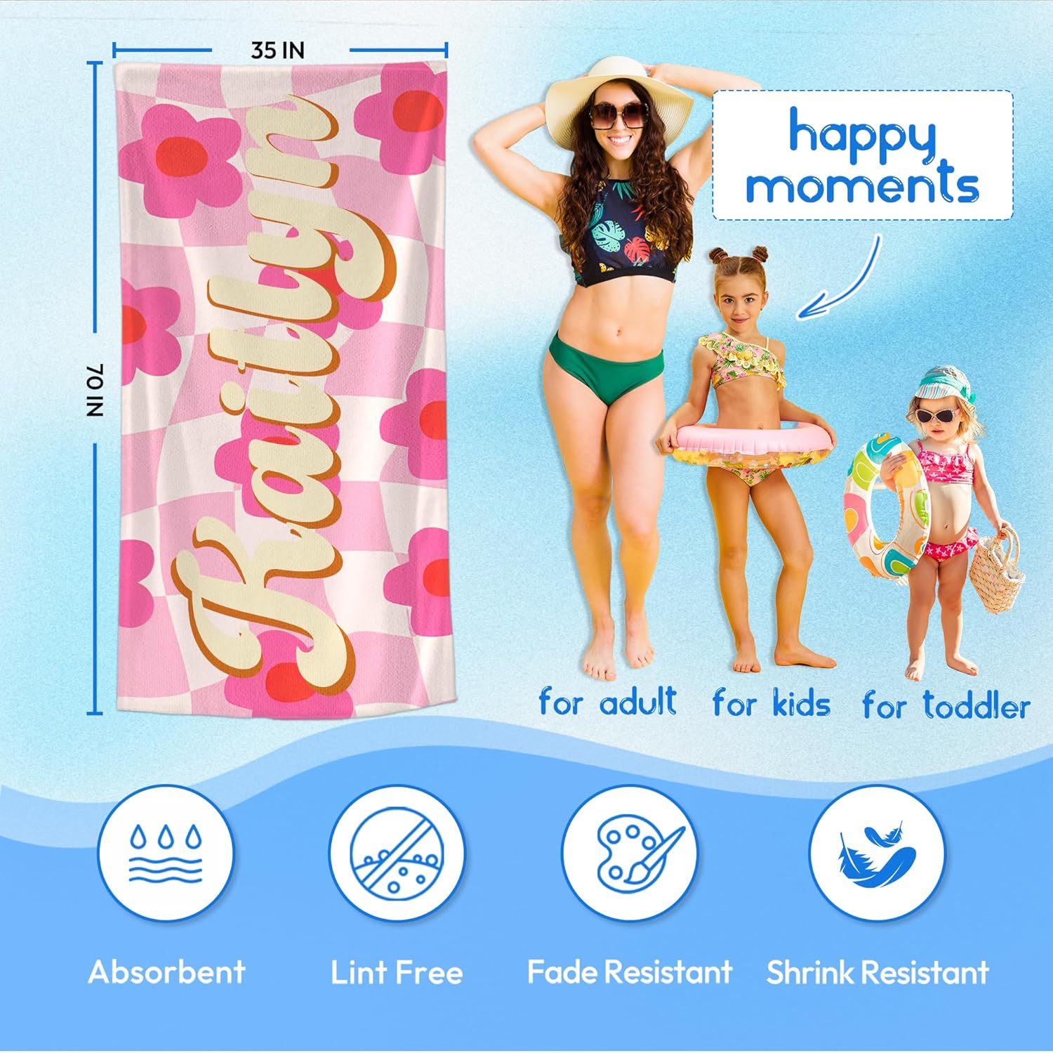 - Perfect Gift for Water Lovers: Whether it's for birthdays, summer vacations, Easter,Mother's Day,or just because, this personalized beach towel makes a delightful gift for swimmers, beach lovers, and sunshine chasers. Surprise your kids, partner, families, or friends with a unique and practical present they'll use all season long