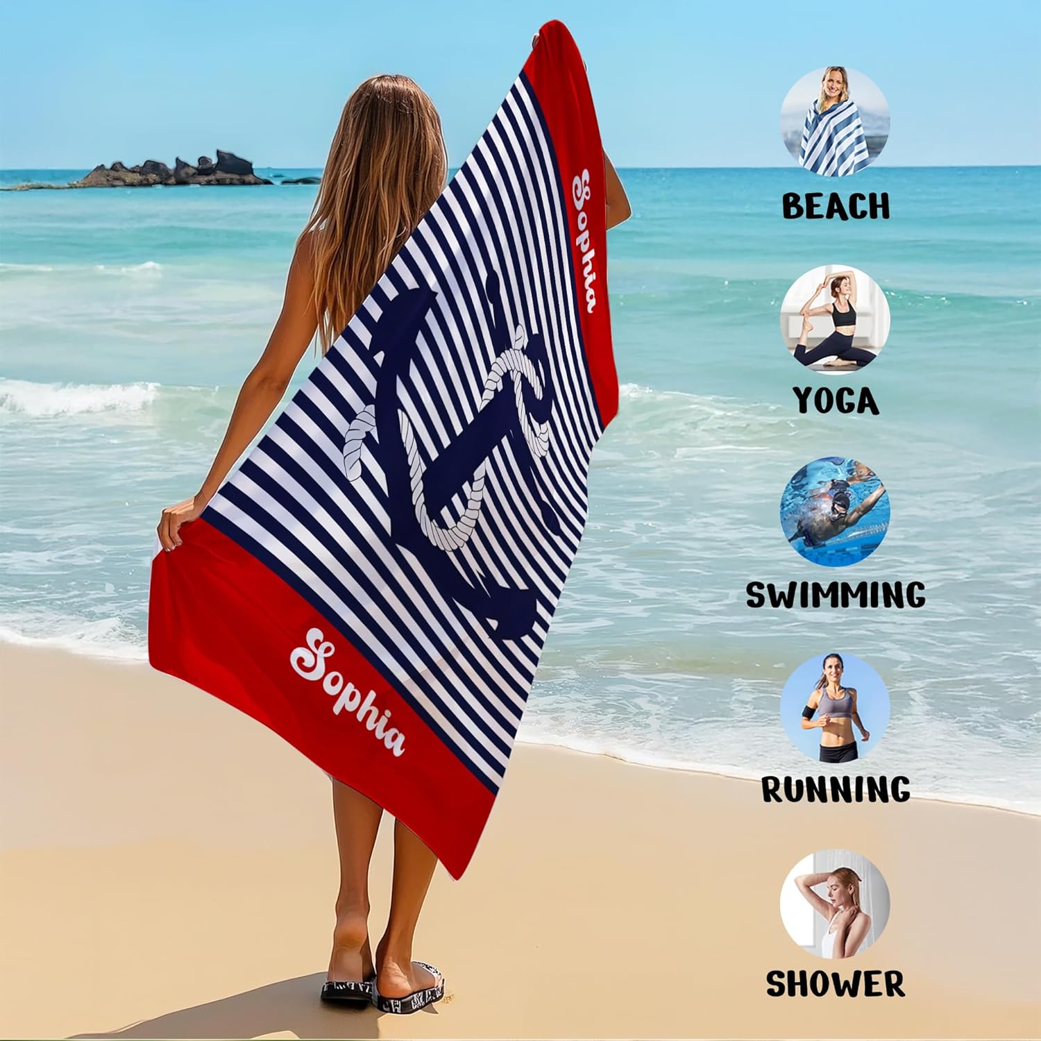 JML Personalized Beach Towel with Name, Custom Anchor Beach Towel, Customized Microfiber Pool Towel, Quick Dry & Absorbent Swim Towel for Adult,Anniversary, Birthday, Summer Holiday,Vacation