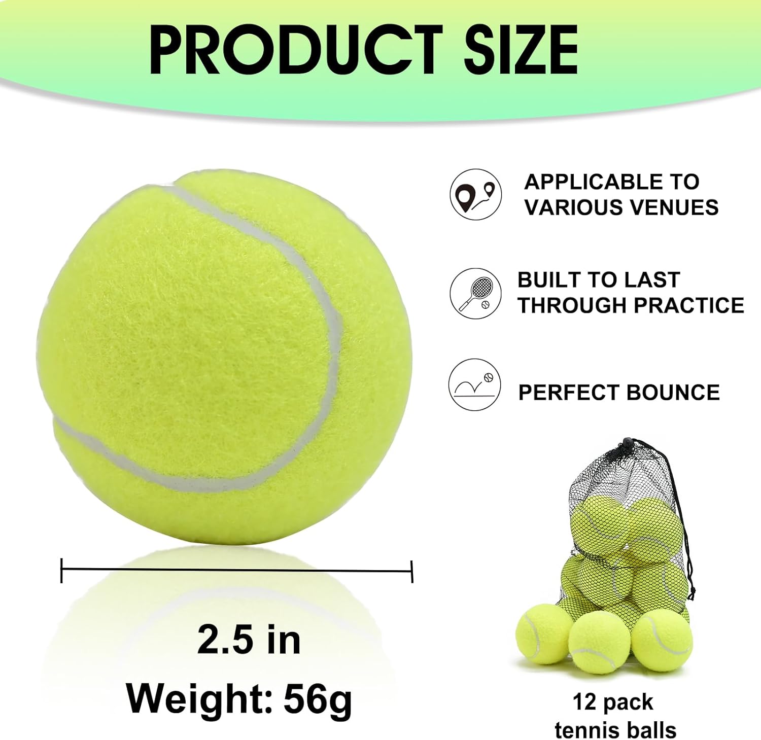 LITIAN 12 Pack Practice Tennis Balls for Beginners – High Elasticity Bulk Tennis Balls for Dog Training, Fetch & Play, with Mesh Carry Bag