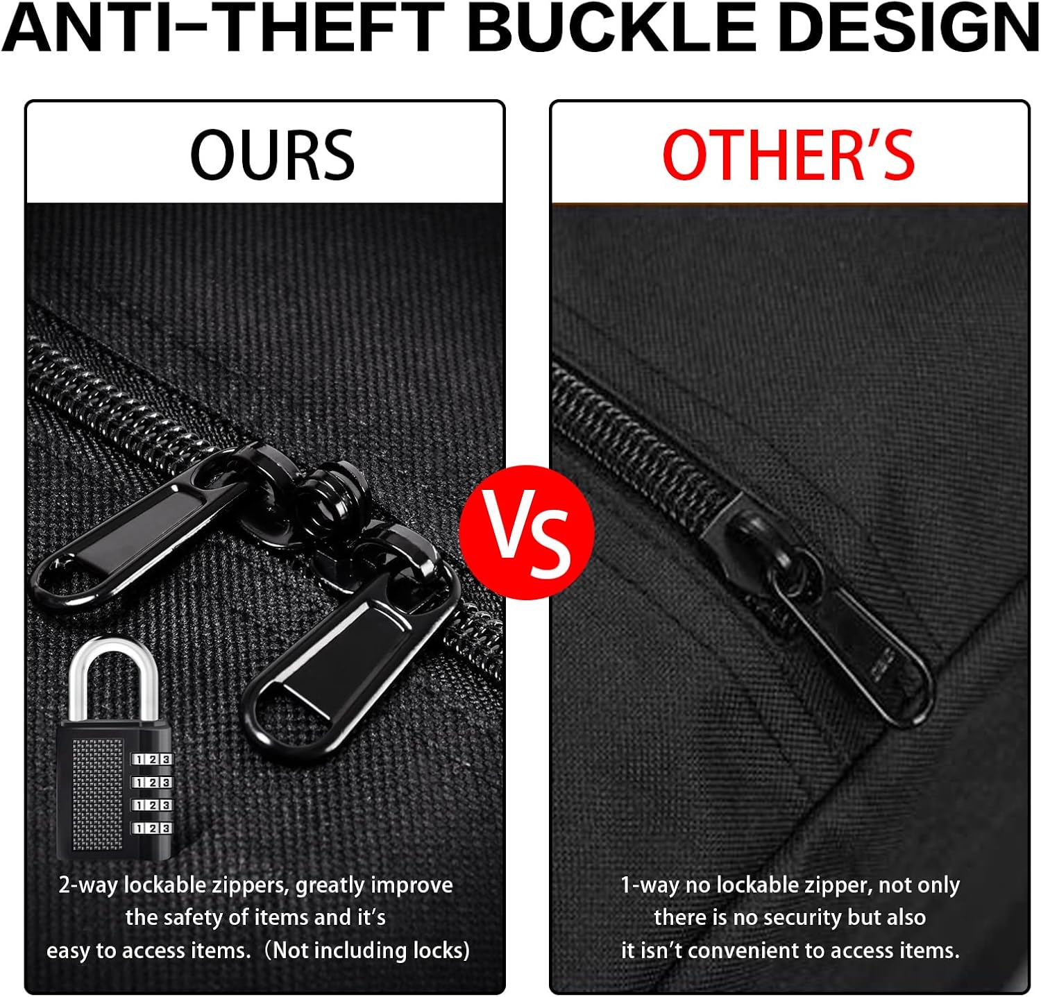 - DOUBLE ZIPPER: The main compartment of the travel bag is equipped with a double-ended zipper for easy use. High-quality zippers stay smooth even with long-term use. The two zippers can be locked with a lock to ensure the safety of items.