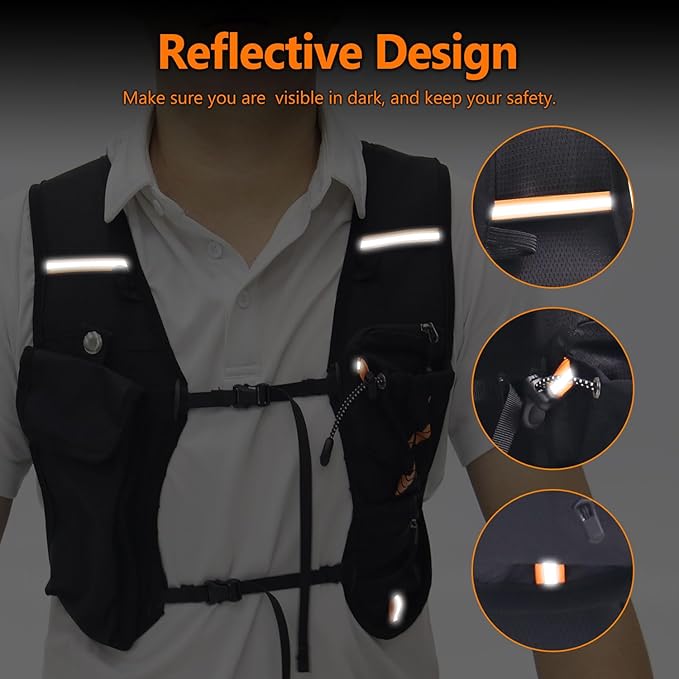 Hydration Backpack with 2L Hydration Bladder, Touch Phone Pocket, Compass, Whistle, Lightweight Breathable Reflective Running Water Backpack for Hiking Hydration Pack for Running Cycling