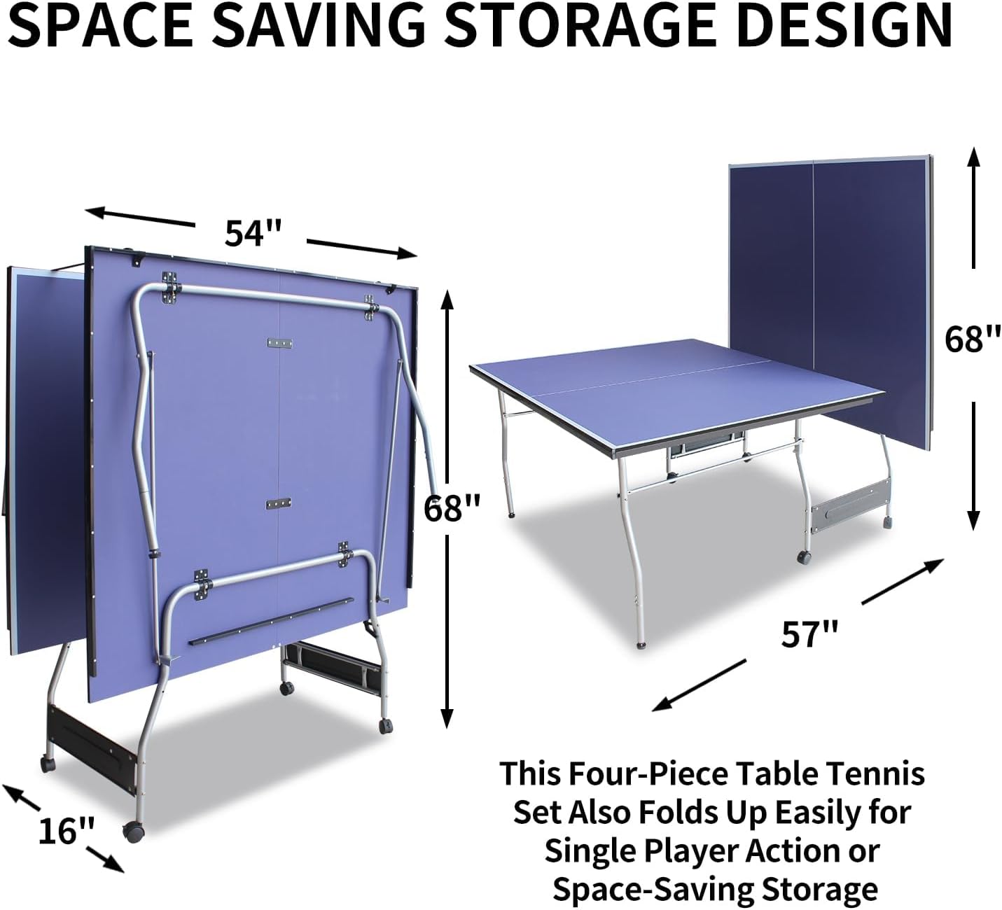 8FT Foldable Ping Pong Table Set, Midsize Portable Table Tennis for Indoor, Outdoor, Includes Net, 2 Paddles, 3 Balls, Weatherproof Design, Single Player Mode, Easy Storage