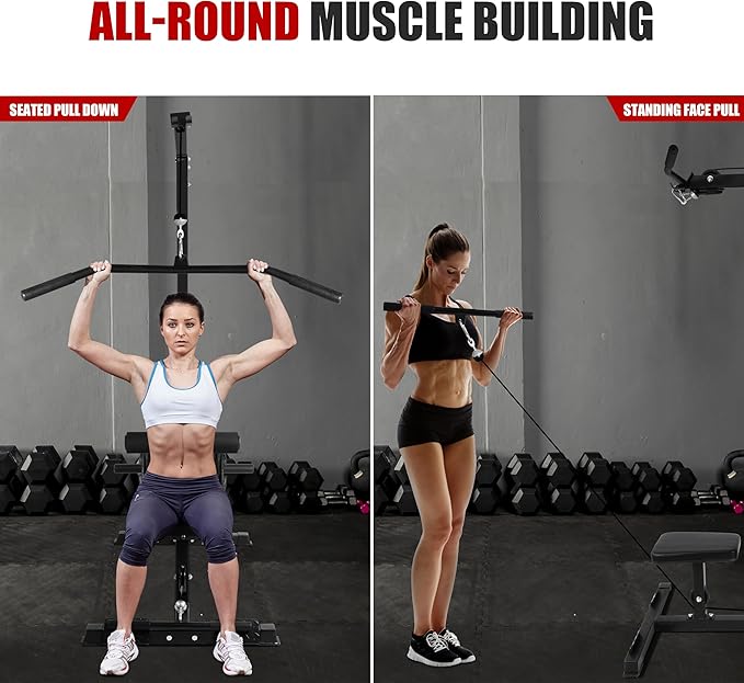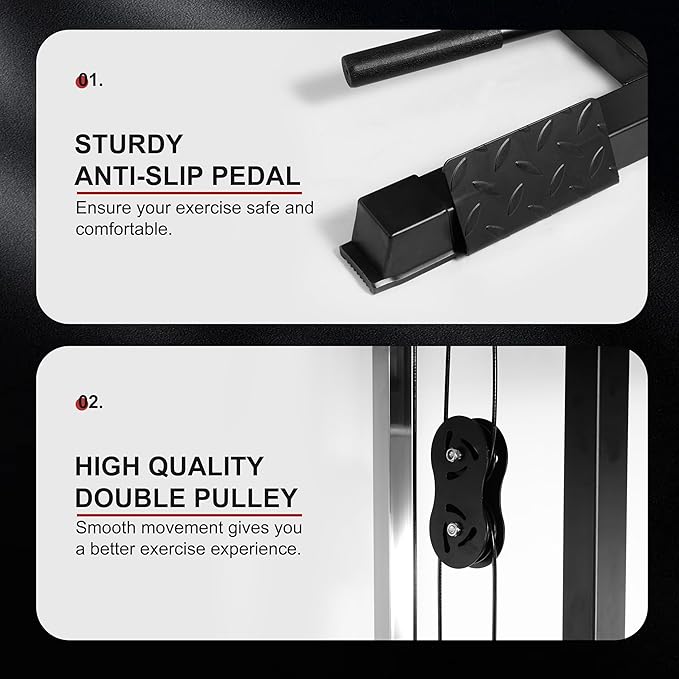 - 【Multi-functional LAT Tower】Set up with high and low pulleys for a variety of exercises, including seated rowing, seated and standing pull downs, biceps curls and other movements. Fully exercise your whole body muscles through training to meet your fitness needs.